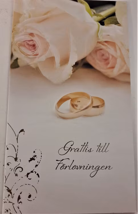 Kort, "Grattis till förlovningen" 0 kr 15 kr Kort, "Grattis till förlovningen", utan kuvert, utan insidestext. 17 x 9,5 cm. Flera populära produkter Handgjort grattiskort med elefantmotiv, utan text 19 kr Grattiskort "Gratulerar till flickan", med kam 19 kr Kort/vykort "Grattis till sonen" 10 kr Inbjudningskort "Välkommen" med kaffekannamotiv 25 kr