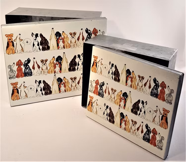 Plåtburk med hundar, x1 Storlek Större Mindre 79 kr 69 kr Välj emellan två storlekar. Större är 19,5 cm bred, 16 cm hög och 7 cm djup. Mindre är 15, 5 cm bred, 13,5 hög och 7 cm djup. Flera populära produkter Krans i halmstrå 59 kr Hängare med 8 krokar i snidat trä 49 kr Vit katt i trä med text, 2 varianter från 10 kr Vackert utsirad oval bricka i valnöt 198 kr Vackert utsirad rektangulär bricka i valnöt 198 kr
