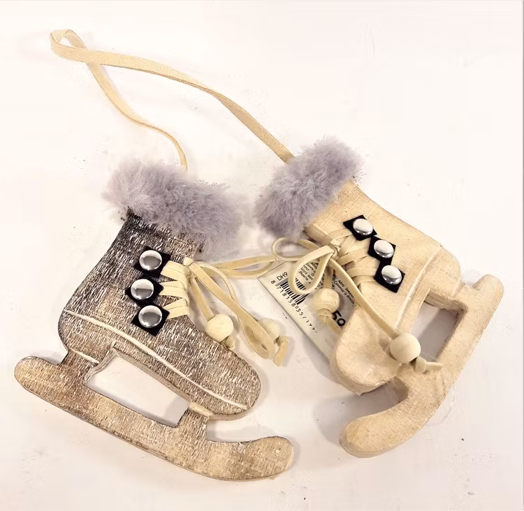 Söta skridskor i trä som dekoration med läderband 39 kr 19 kr Söta dekorationer i trä med läderband. ca 8x8 cm. Flera populära produkter Julhjärtan med snöre, 6 röda och 6 vita 49 kr Etiketter för paket, 3-pack 15 kr Söta små fåglar med klädnypa, 6 st. 69 kr Julpynt, domherre med snöre 19 kr Kanelstänger med trähjärta, "God jul" 19 kr