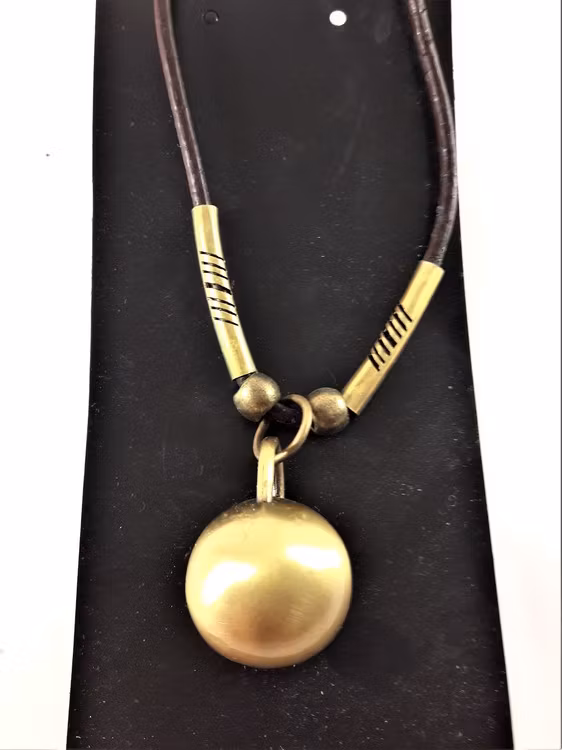 - Tufft läderhalsband, utsmyckat med ett guldfärgat hänge som sätter pricken över i:et.