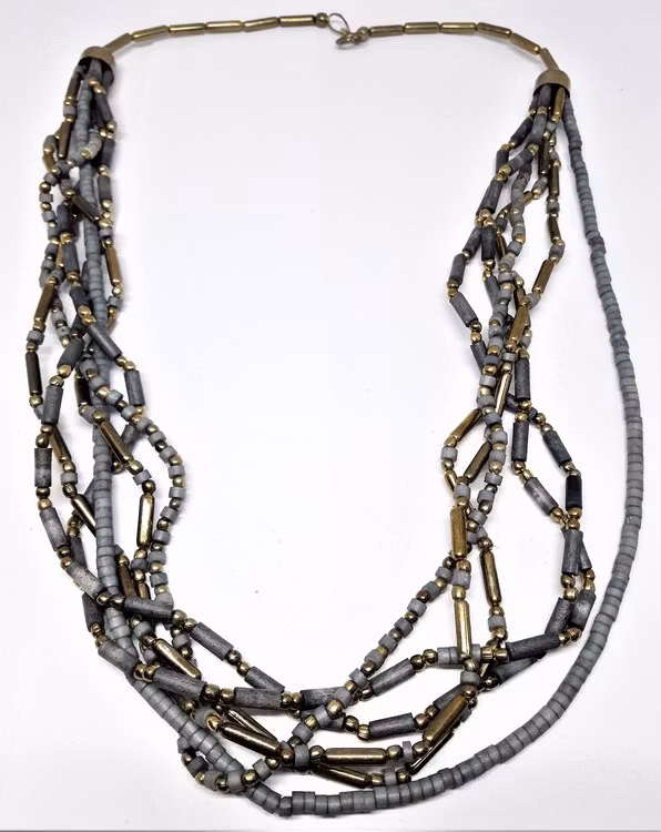 Flerradigt halsband i grått 120 kr 79 kr Handgjort. Längd ca 60 cm. Variationer förekommer. Flera populära produkter Halsband av stora flerfärgade Karneolstenar från 79 kr Kort halsband i turkos och vitt 59 kr Halsband i ben 79 kr Långt halsband med blå kulor 49 kr Flerradigt halsband i ben med kulor och löv 99 kr