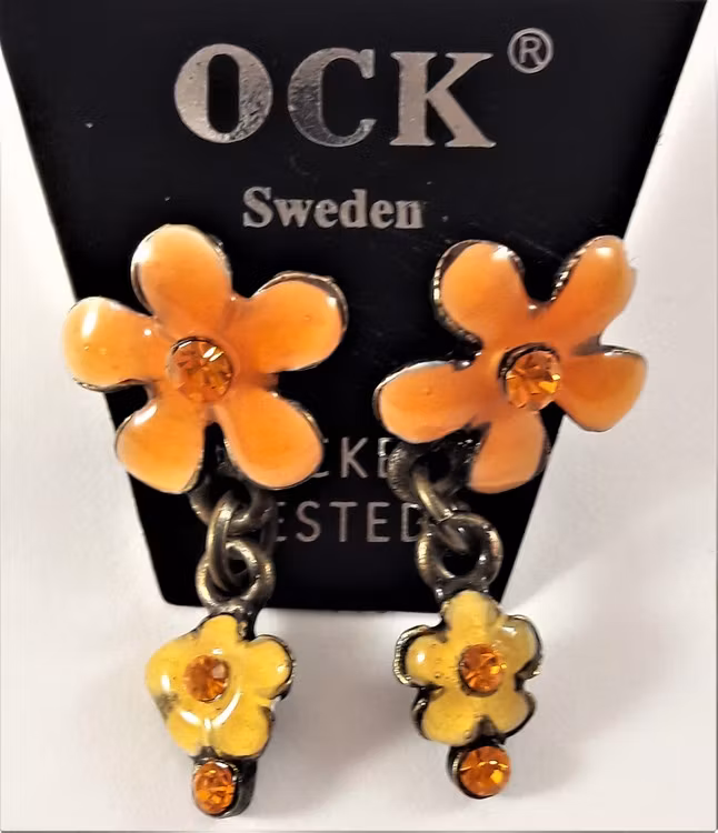 Gör ett blommigt inslag i stilen med dessa Emaljerade Örhängen i Form av Blommor och Strass i Blå/Grön från det svenska märket OCK.