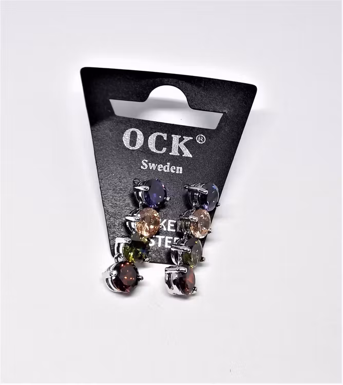 - Snygga silverfärgade örhängen med stenar i olika färger såsom röd, grön och blå.